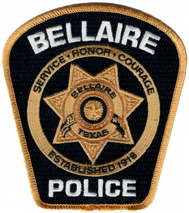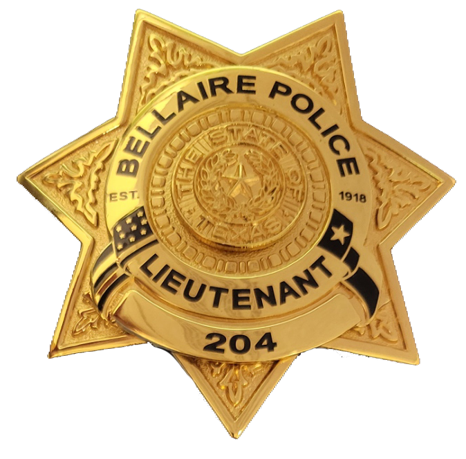 The Bellaire Police Department celebrated the turn of the century by issuing a new badge for that year. the center of the badge is a small replica of the officer's currently issued badge. The center seal was changed from the blue state seal to a white background with an eagle overlaying the state flag in the shape of Texas. The badge contains the officer's name, rank, and year of employment. It was issued and worn for the year 2000.