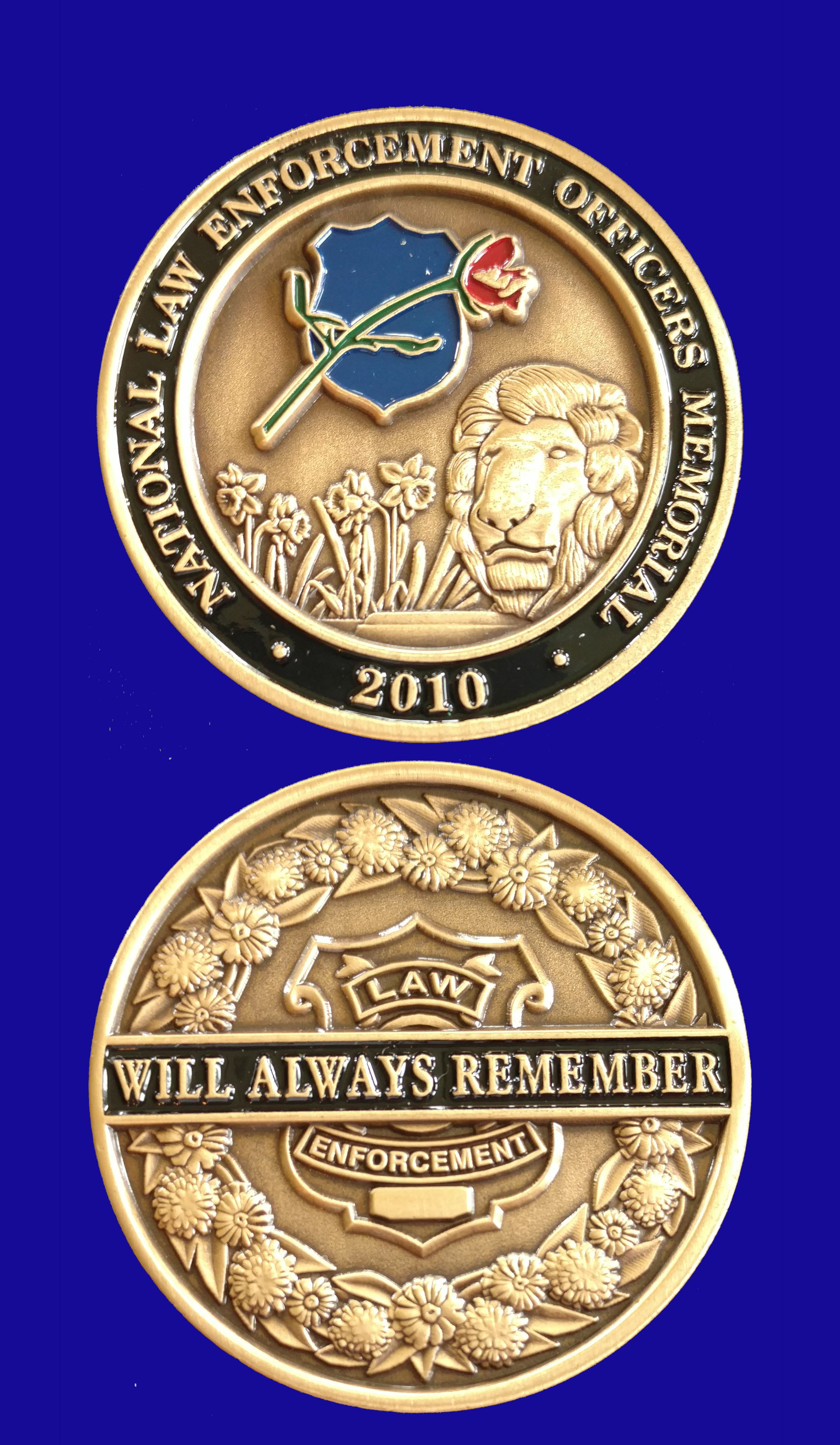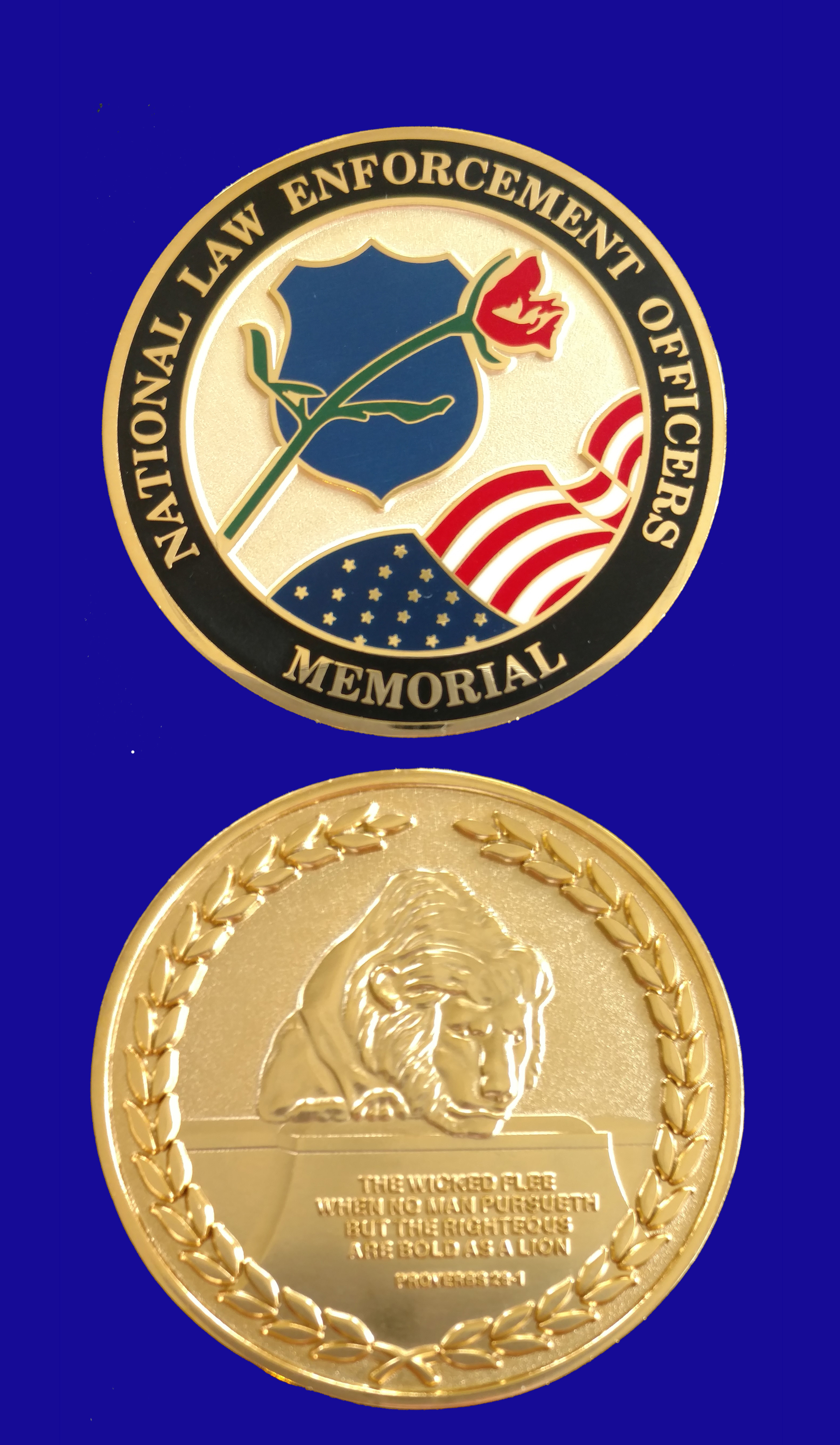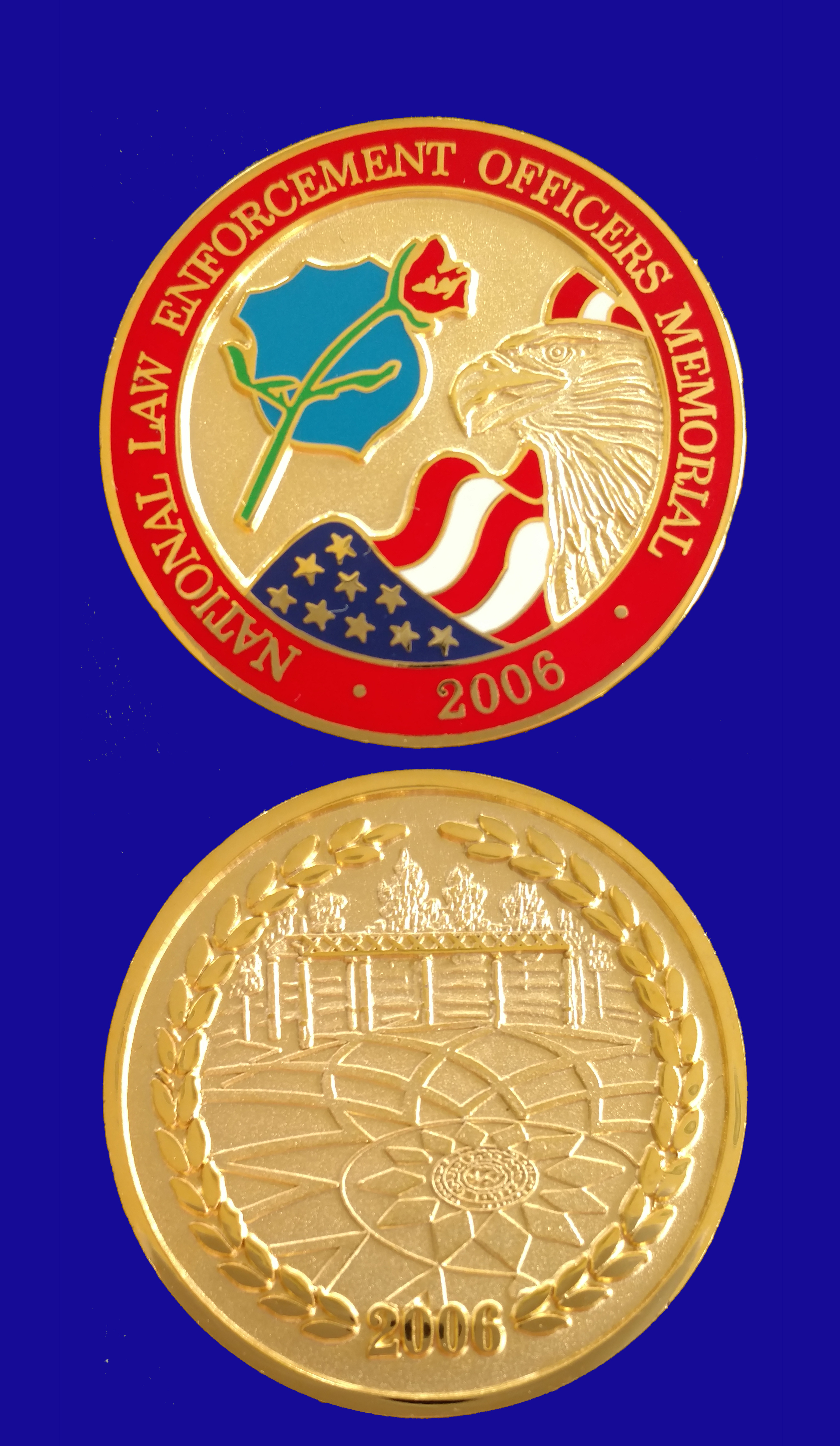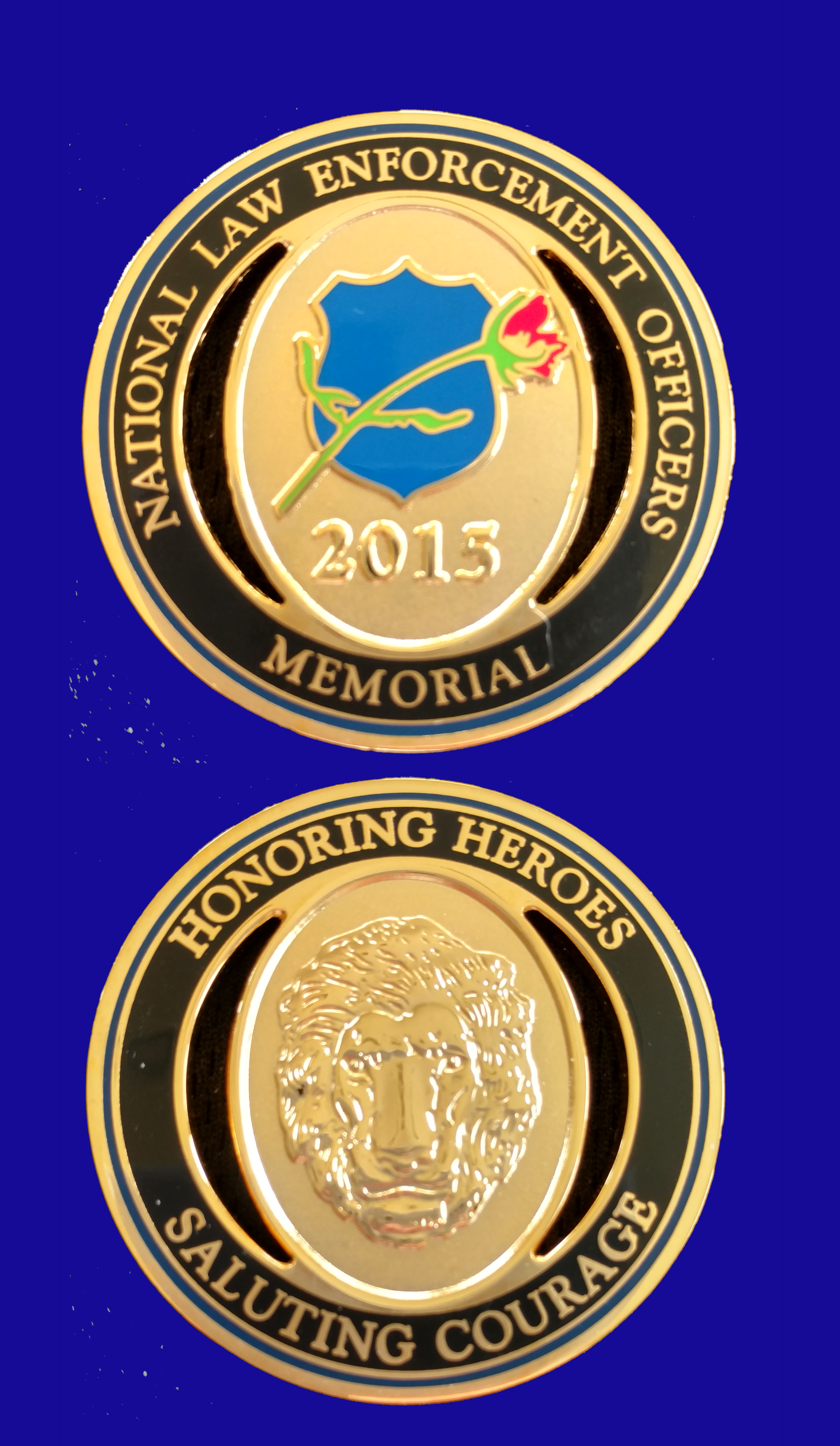 On October 1, 1962, President John F. Kennedy signed a bill designating May 15th of each year as National Law Enforcement Memorial Day and designating the entire week as Police Week.This page of badges and challenge coins from the National Law Enforcement Memorial honors those officers who have given their lives for the protection of the citizens of this great nation.