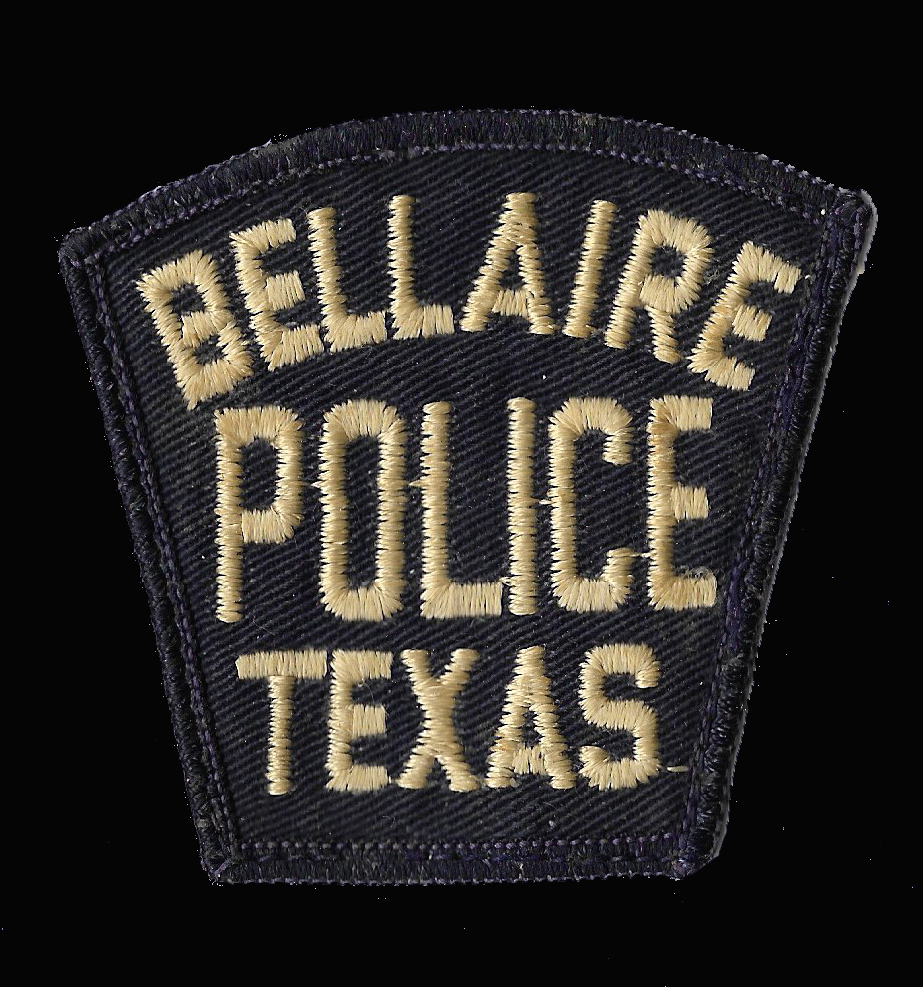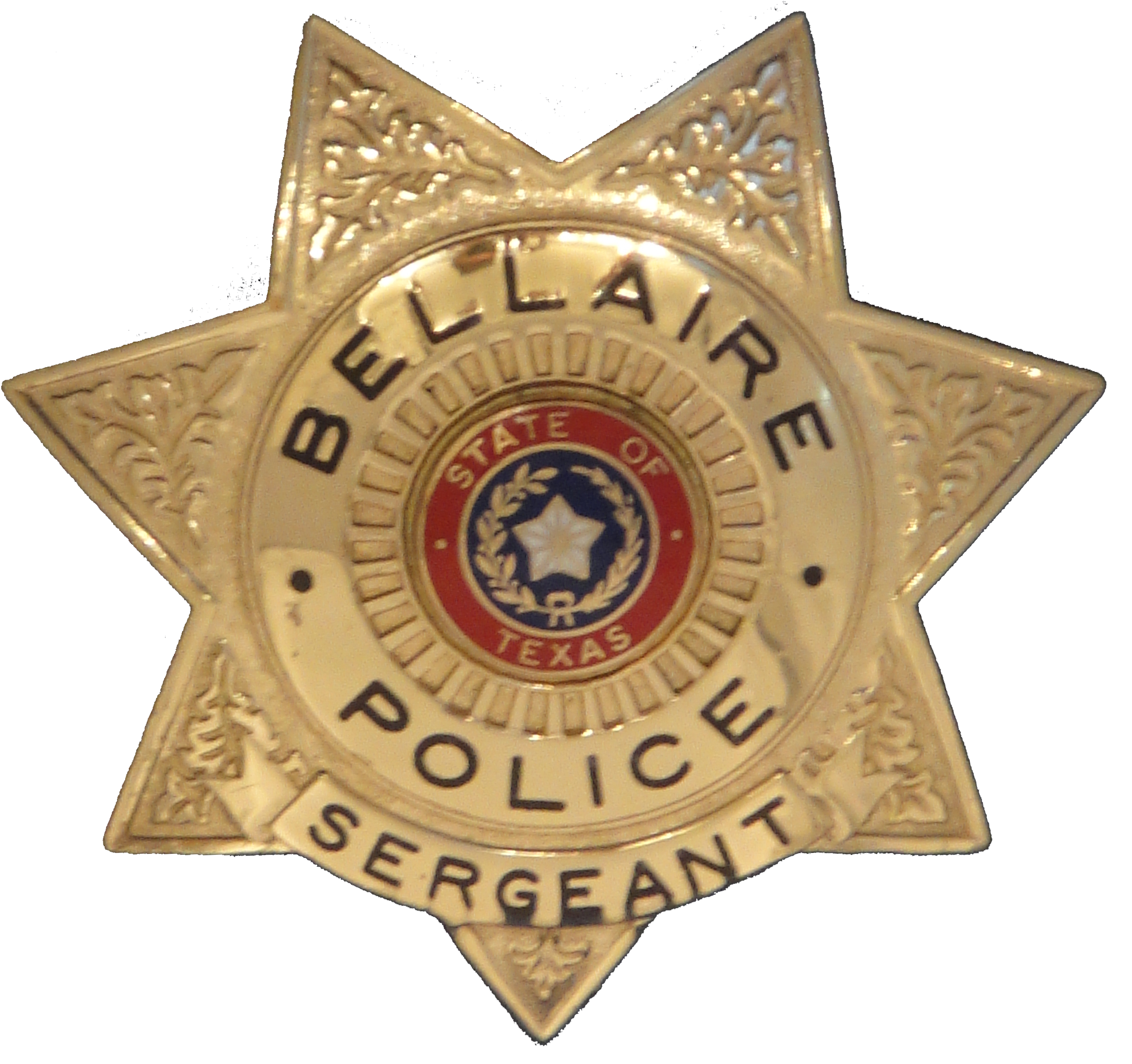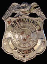 The Bellaire Police Department celebrated the turn of the century by issuing a new badge for that year. the center of the badge is a small replica of the officer's currently issued badge. The center seal was changed from the blue state seal to a white background with an eagle overlaying the state flag in the shape of Texas. The badge contains the officer's name, rank, and year of employment. It was issued and worn for the year 2000.