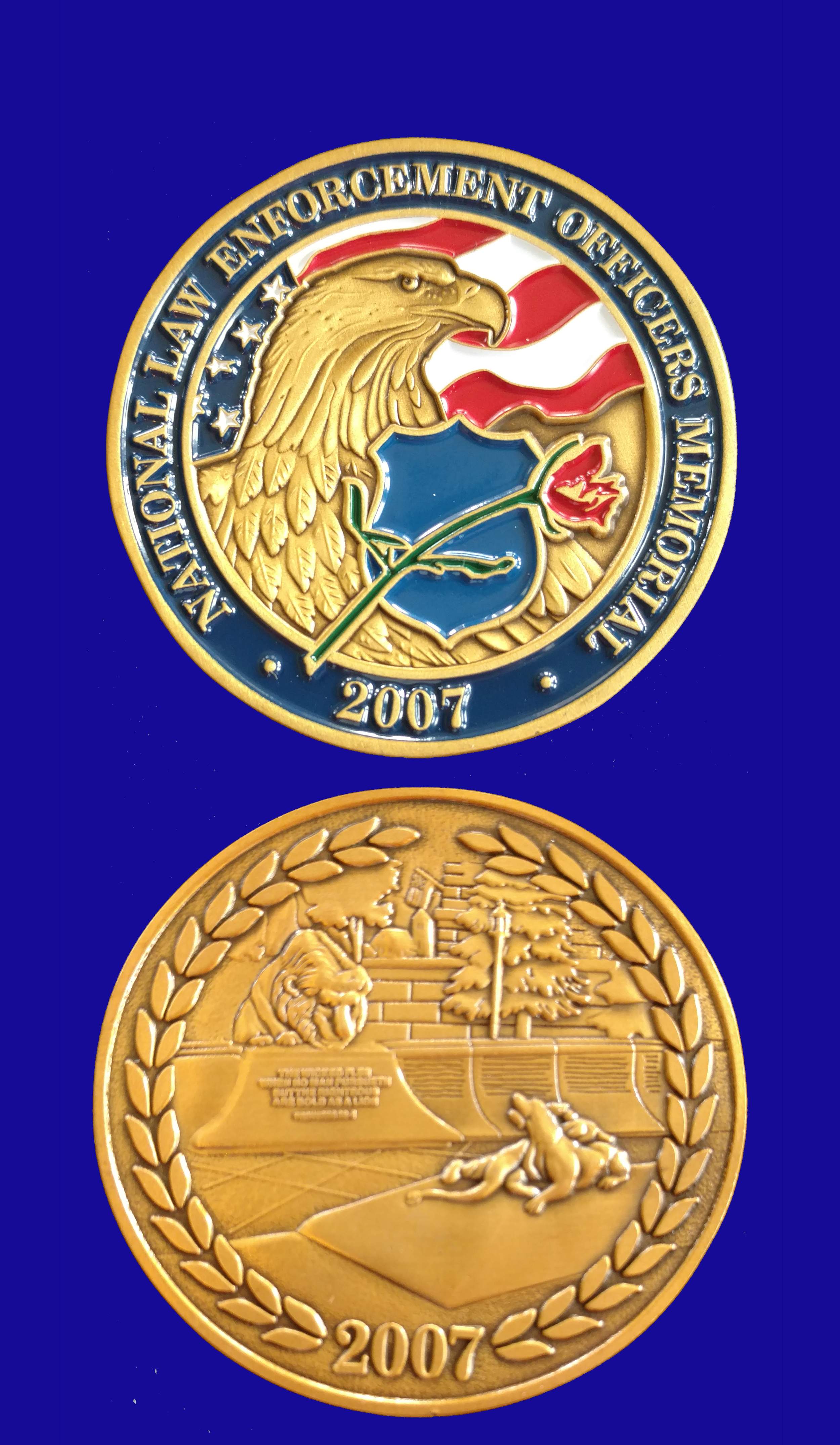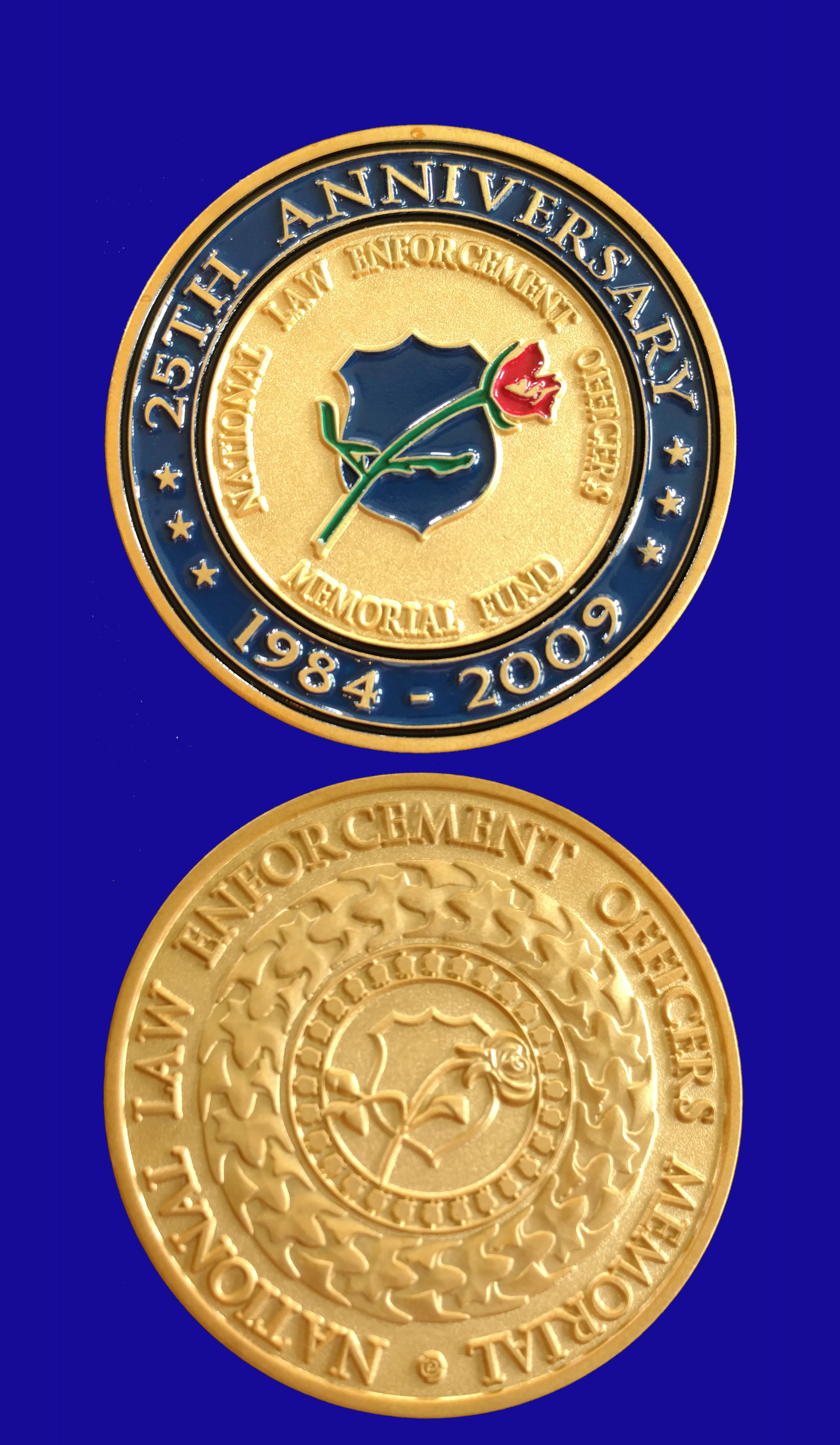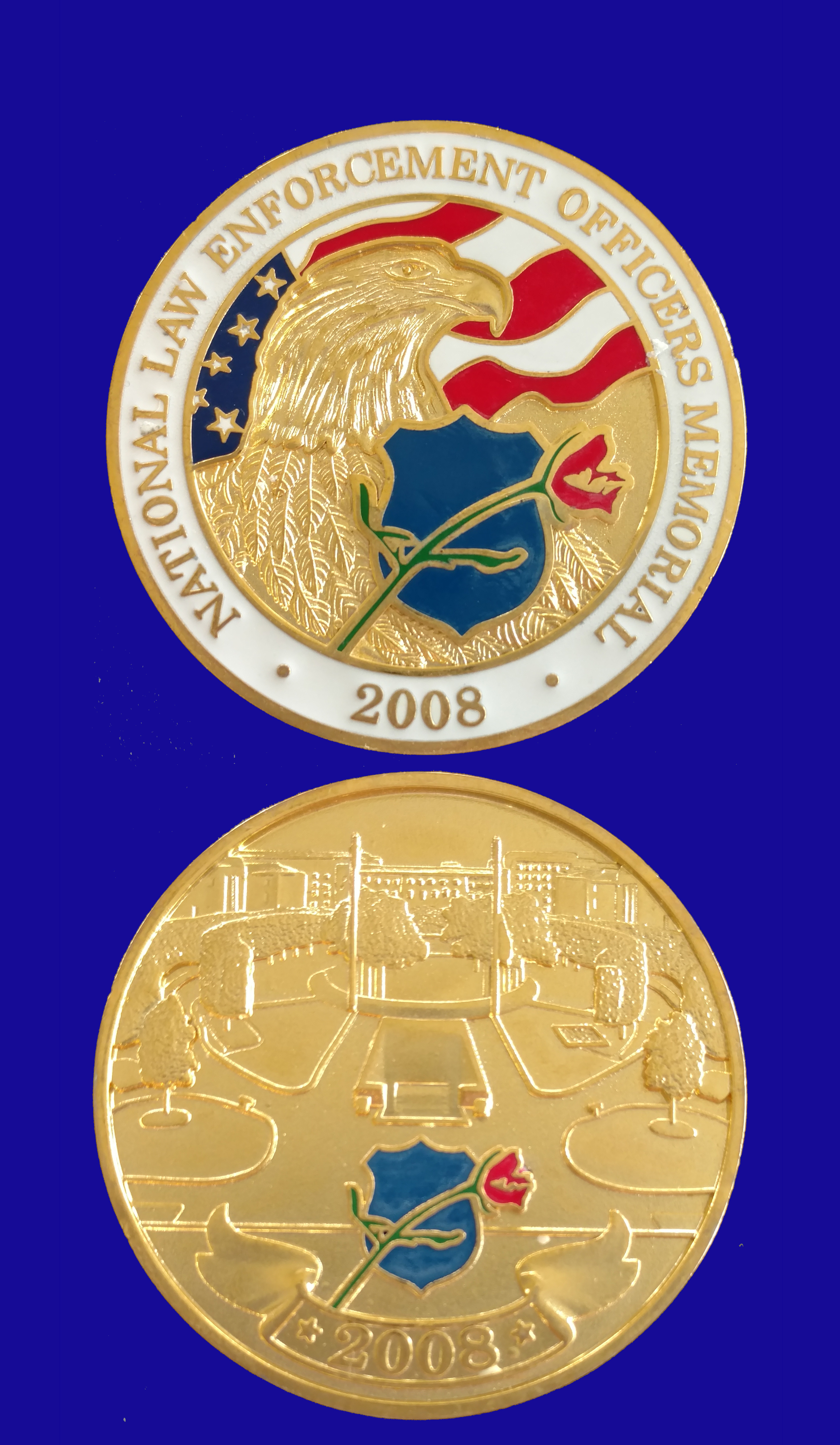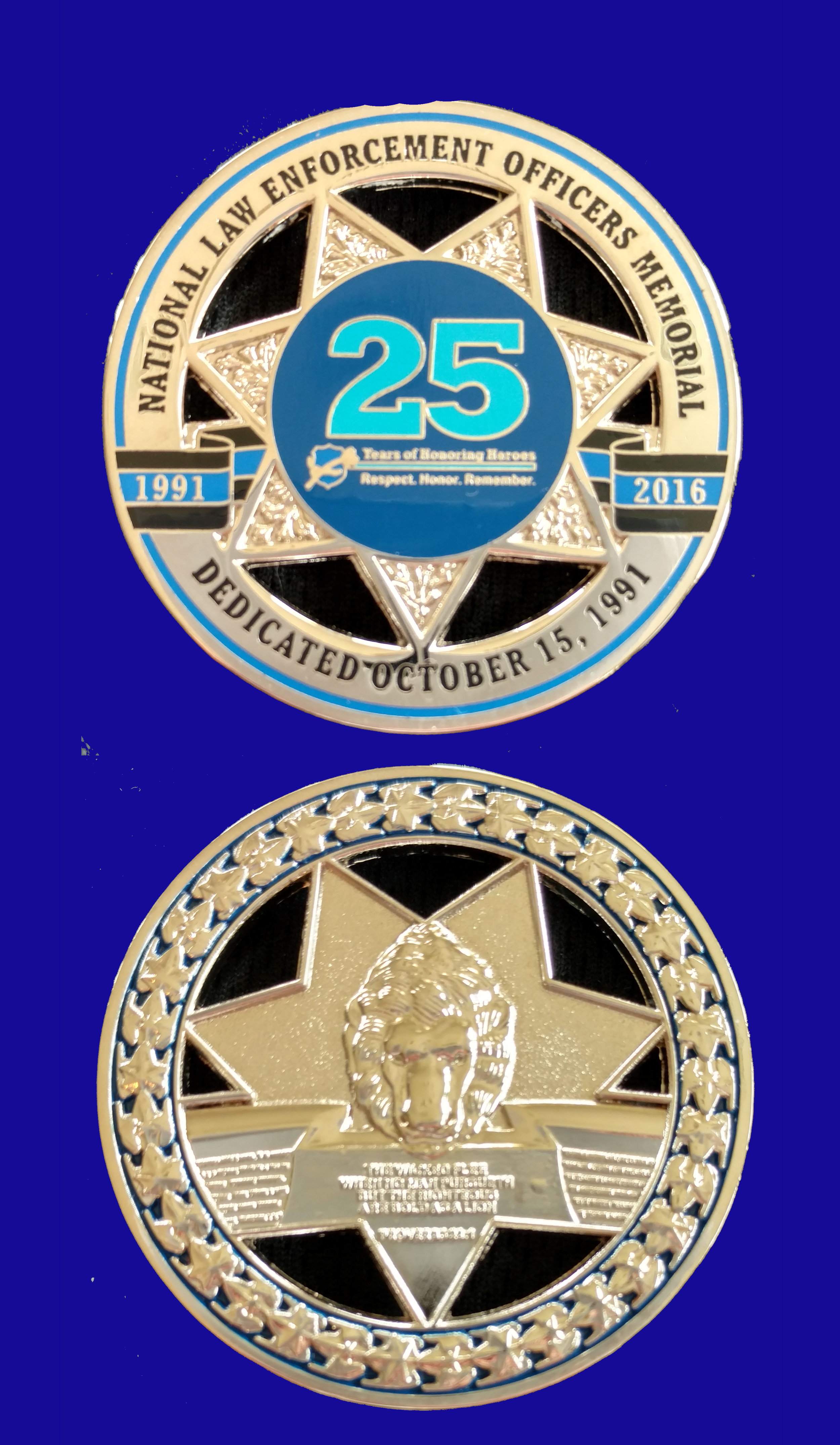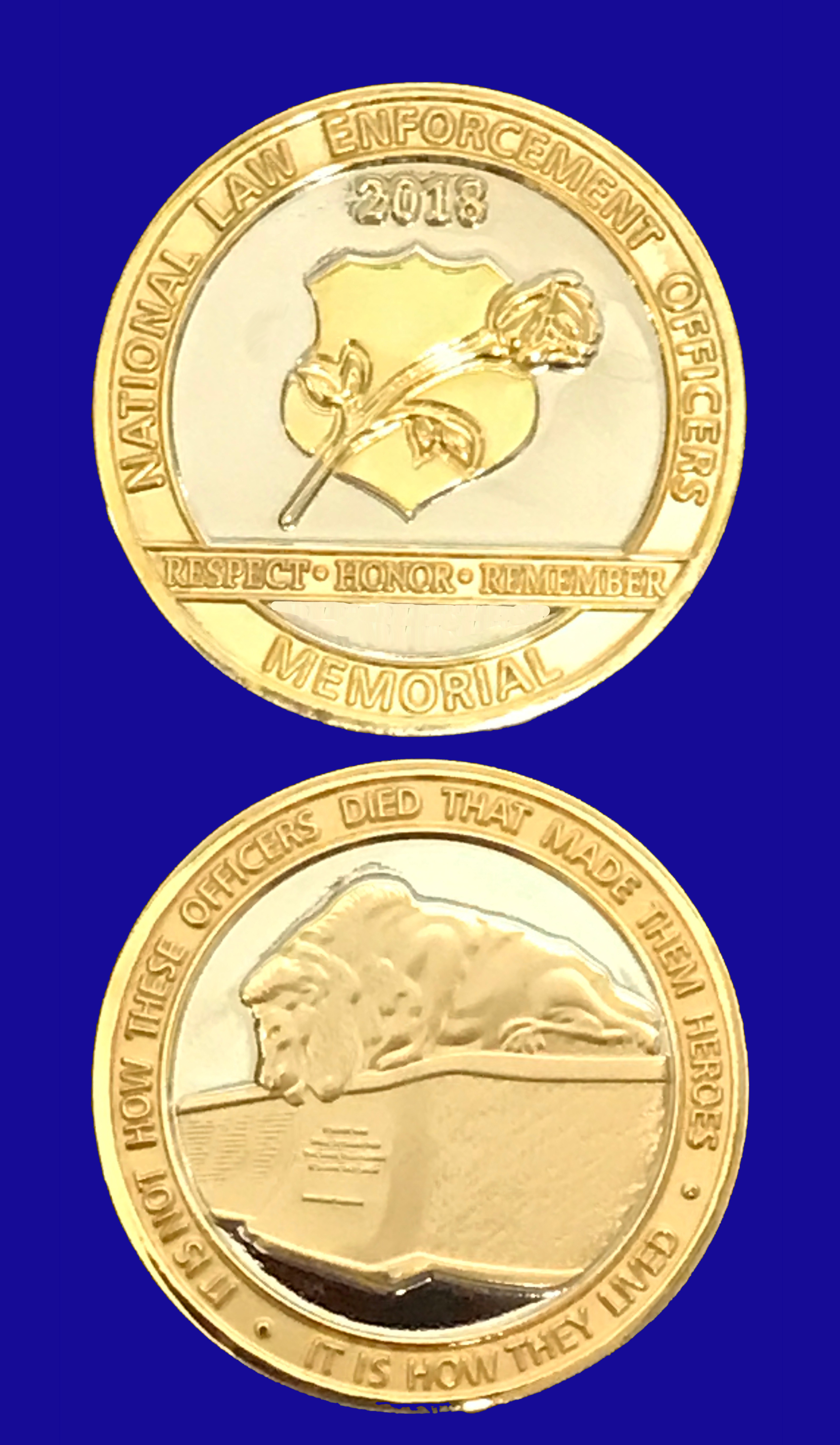 On October 1, 1962, President John F. Kennedy signed a bill designating May 15th of each year as National Law Enforcement Memorial Day and designating the entire week as Police Week.This page of badges and challenge coins from the National Law Enforcement Memorial honors those officers who have given their lives for the protection of the citizens of this great nation.
